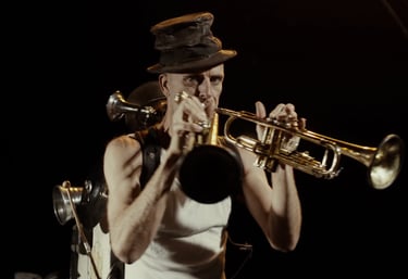 His latest solo creation presents a refined musical performance — a visual concert in the key of clown.