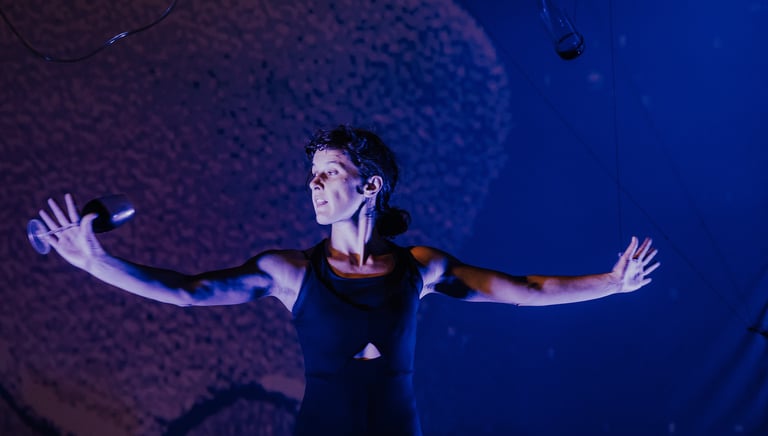 Es un espectáculo de teatro físico, circo mínimo, manipulación de objeto y videoproyecciones.
